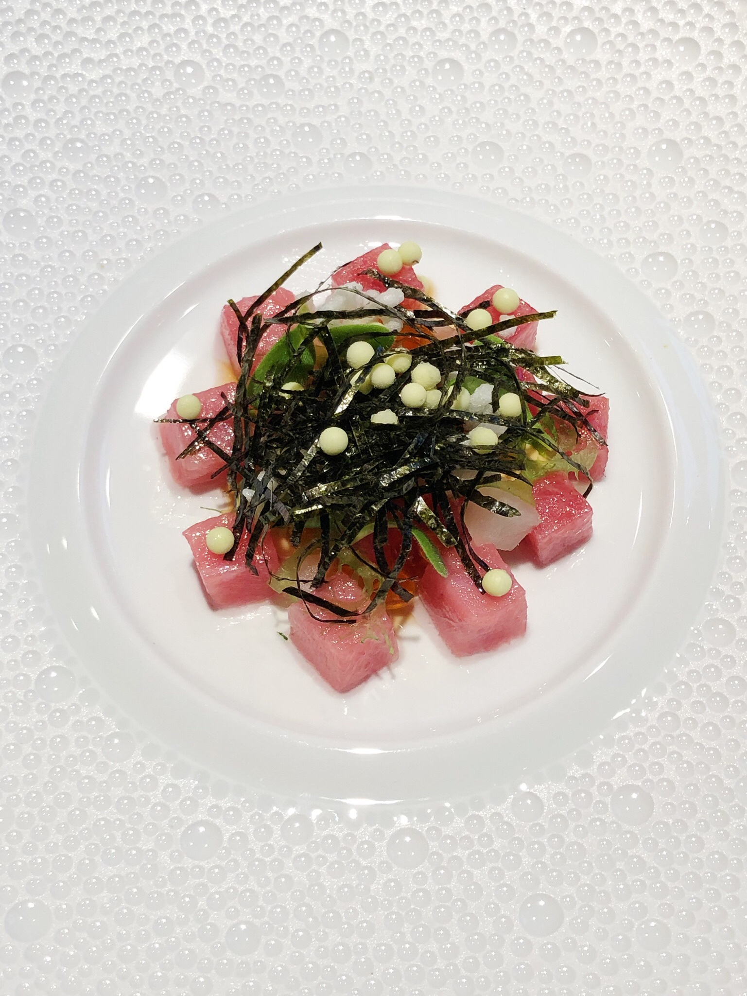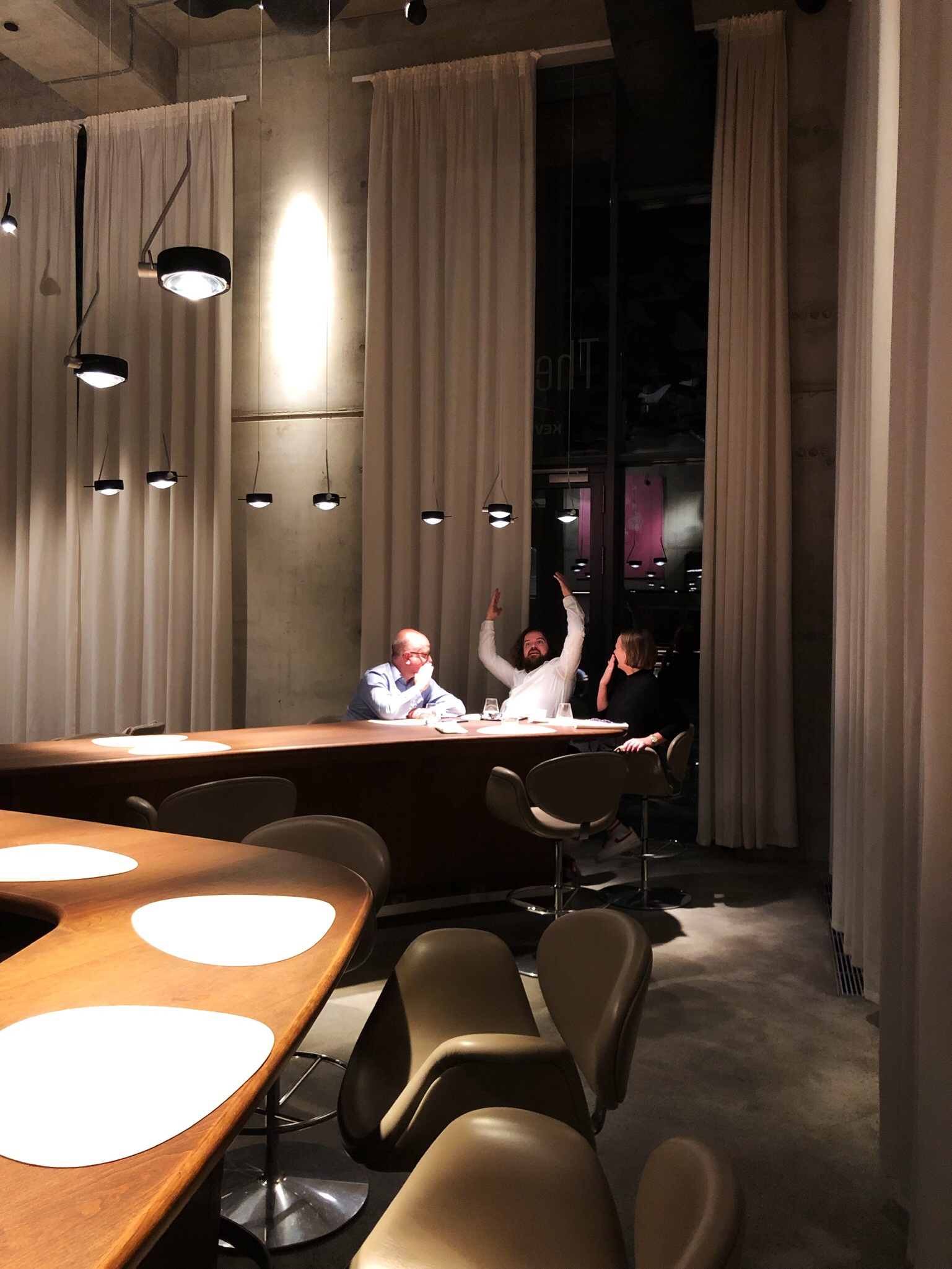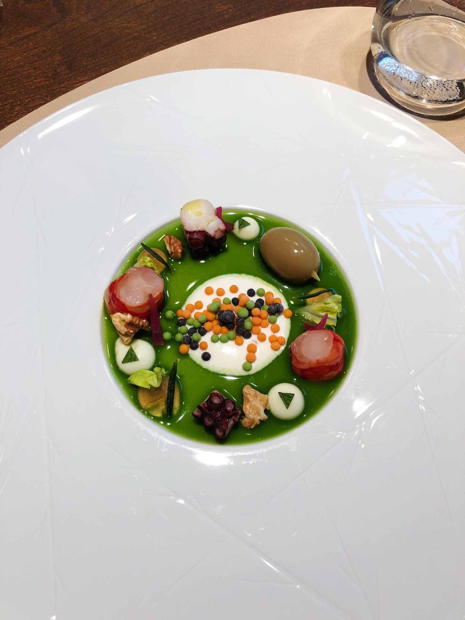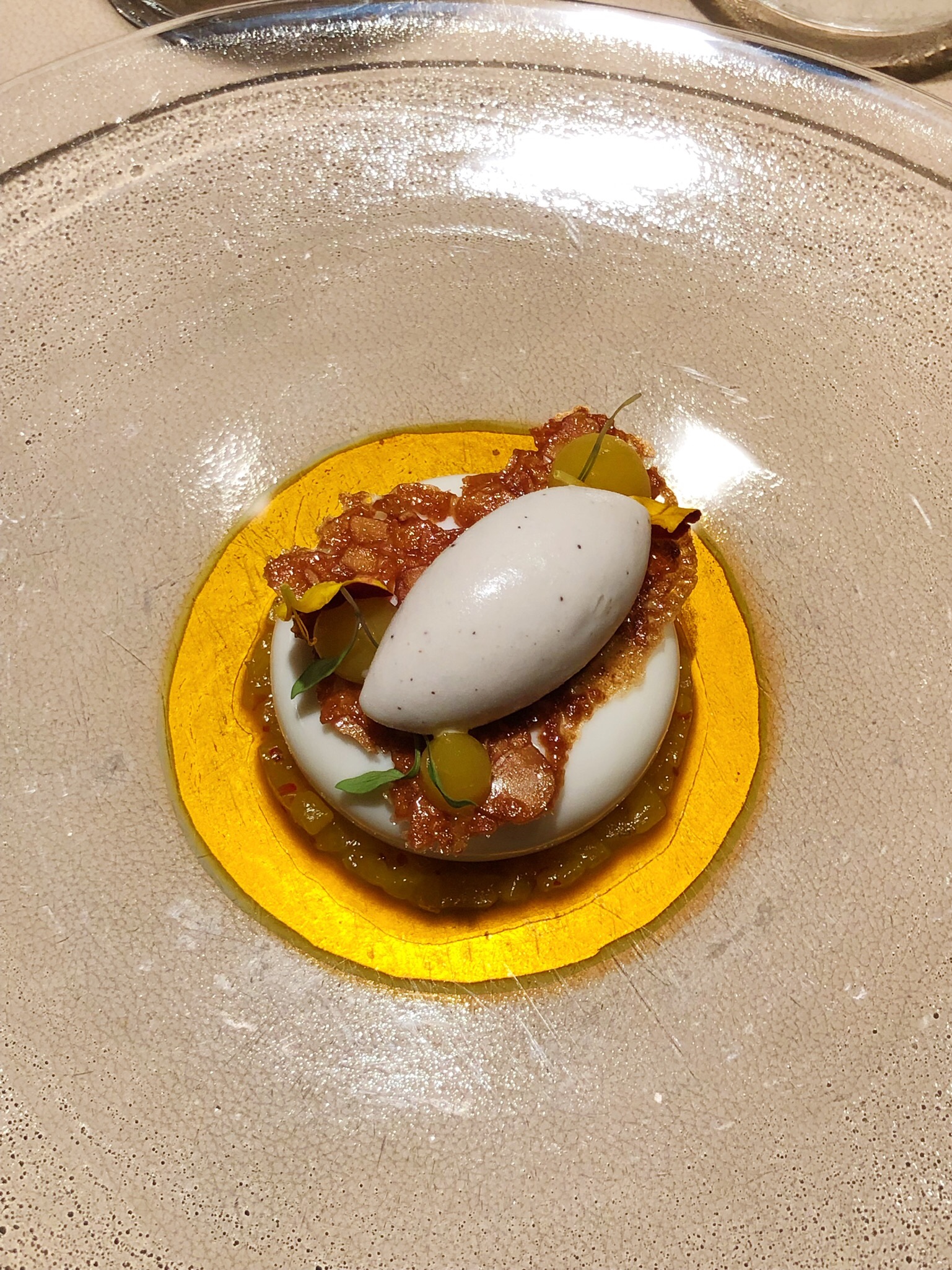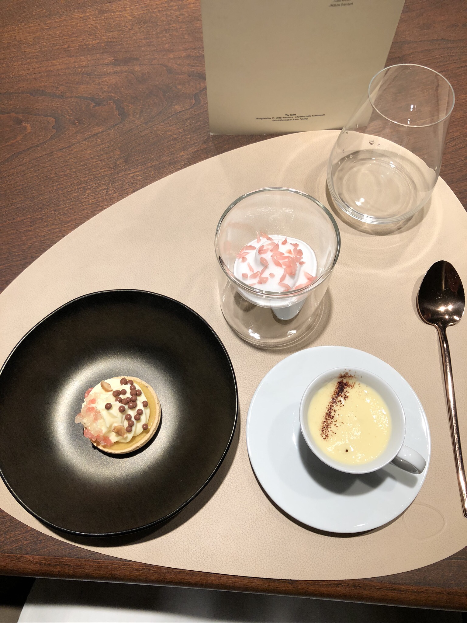 Diddl-Maus-Tasse! Daran muss ich immer denken wenn einem im The Table wieder der Hühnerfuß-Eierbecher gereicht wird. Im Regal eines Butlers in den 90ern bei der Diddl-Maus-Tasse und den ganzen anderen lustigen Küchenutensilien würd ich ihn vermuten. Aber nicht im 3 Sterne Restaurant. Aber nun gut, es gibt Ei Carbonara aus ihm und ich höre sofort auf mich innerlich zu beschweren. Man könnte über jeden Gang einen eigenen Post schreiben, das Kalbsmacaron, die unfassbar intensive Dashi. Alles handwerklich auf nem anderen Planeten. Nur eine kleine Kritik: kurz nach der Eröffnung waren die Gänge in ihrer Haptik noch überraschender. Aber ich beschwer mich nicht. Höchstens darüber dass ich nicht wieder zum ersten Mal hingehen kann. Und ein kleiner Tipp: am Vierertisch ganz außen sitzt man zwar nett zusammen, bekommt aber leider vom Spektakel in der offenen Küche wenig mit.