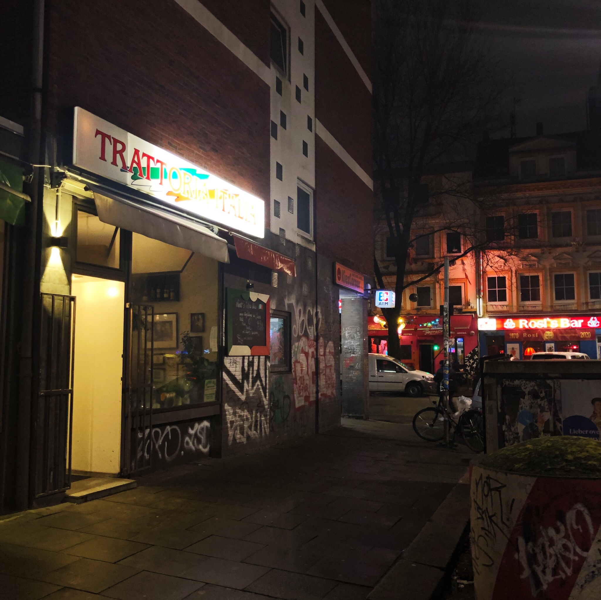 Zu den vom Aussterben bedrohten Arten des 21. Jahrhunderts gehört wohl neben dem Java-Nashorn und der Karettschildkröte ganz eindeutig auch der “Lieblingsitaliener”. Man könnte zwar jeden Stadtbewohner mittleren Alters nachts aus dem Schlaf reißen und er würde sich natürlich erstmal wundern, wie man eigentlich in seine Wohnung gekommen ist, einem aber dann ohne große Verzögerung seinen favorisierten Ramen- oder Pho-Laden nennen können. Italiener aber – Fehlanzeige. Los geht die Safari nach Nudeln, die nicht in asiatischer Brühe schwimmen, in einem denkbar absurden Biotop: der Seilerstraße. Die “Trattoria Italia” ist eines der kulinarischen Angebote im direkten Bierdunstkreis des Hamburger Bergs, in das man nicht unbedingt bereits betrunken reingehen muss (im Gegensatz zum KFC). Betrunken rausgehen ist natürlich optional. Die gute Nachricht: Während man einen Besuch im Kentucky Fried Chicken danach zu 100% bereut, bereut man ihn hier nur zu 50%. Denn die eine Hälfte der Gerichte war gut (Schwertfisch Carpaccio, Papardelle mit Wildschwein), die andere Hälfte, wie z.B. die Sepia Taglierini, eher fad und die Pizzen ganz enttäuschend. Daher die schlechte Nachricht: Kann man schon machen, aber zum Lieblingsitaliener taugts nicht. Auch wenn die Tatsache, dass man direkt raus- und in die nächste Bar reintorkeln kann, um dann lauthals “Bello Impossibile” zu grölen, natürlich ein paar mediterrane Lifestylepunkte auf der nach oben offenen Azzurro-Skala gibt.