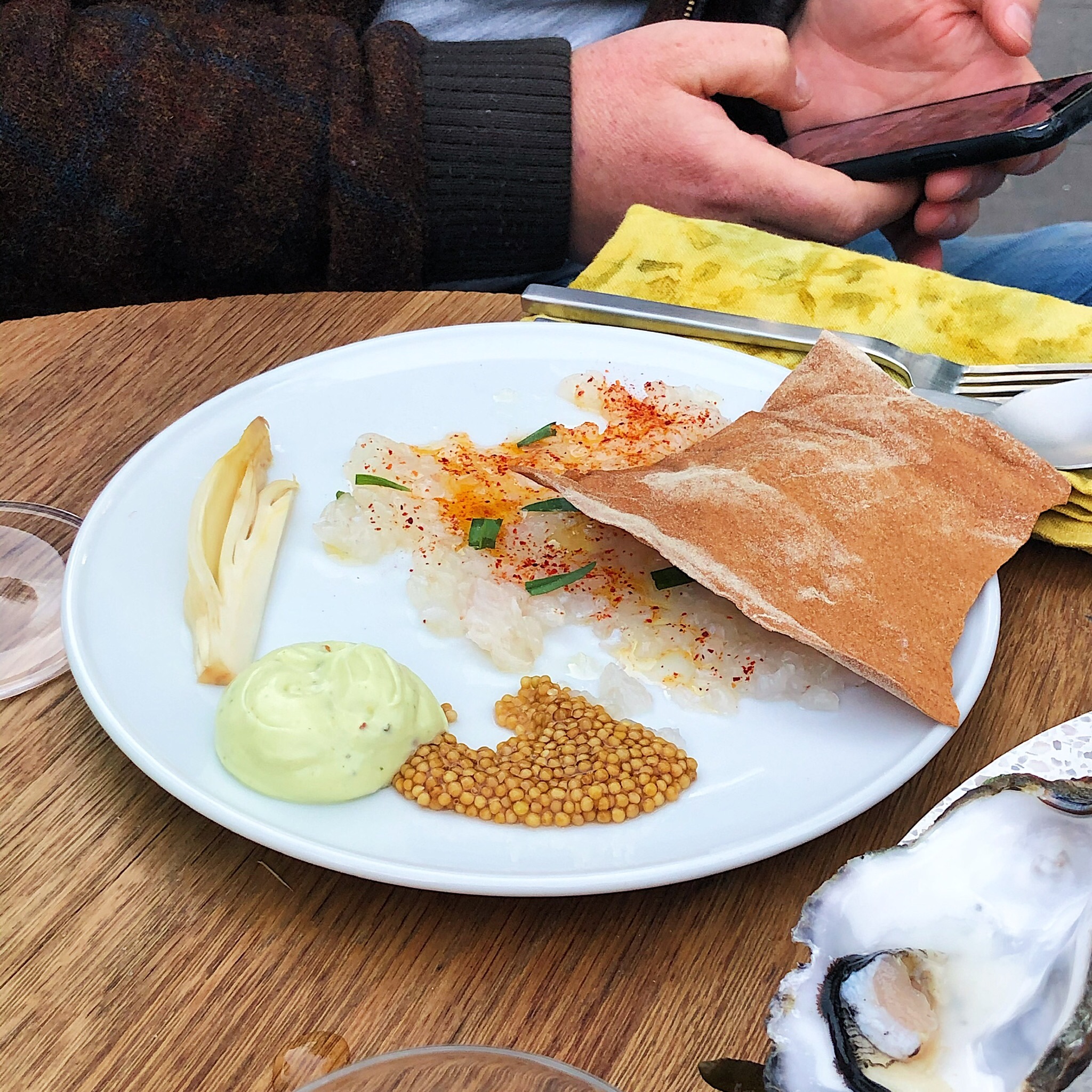 Elon Musk hat mal geäußert, dass die Wahrscheinlichkeit relativ hoch ist, dass wir als Menschheit in einer Simulation leben. Ich kann das ziemlich gut nachvollziehen, besonders hier in Hamburg. Ich habe eigentlich ständig das Gefühl, dass Hamburg nicht wirklich eine Hafenstadt ist, sondern nur so tut als wär sie eine. So wie im Hamburg Dungeon keine echten Menschen geköpft werden und im Miniaturwunderland keine echten Züge fahren, so beschleicht es mich oft, als würde dieses ganze Seemans-, Meer- und Schiffeschauspiel immer nur für Erika aus Koblenz abgezogen werden. Die Landebrücken Potemkins. Eine dünne Schicht hanseatischer Folklore überzieht zwar die Stadt, aber so richtig maritim ist eigentlich meist nur der Kleidungsstil in Eppendorf. Und besonders eine gute Seafoodbar, wie es sie in anderen Nord- und Ostseeanrainerstädten dann doch immer wieder gibt, hat man hier bislang vergeblich gesucht. Ein Glück, dass Fabio Haebel anscheinend der norddeutsche Alfons Schuhbeck werden möchte und er, ähnlich wie der Bayernkoch das gesamte Platzl in München, jetzt so langsam die gesamte Ecke Paul-Roosen-Straße/Brunnenhof einnehmen möchte. Nach Haebel, Naturweinbar und vor allem nach der großen Quarantäne machte jetzt endlich die XO Seafoodbar auf. Die Fischsuppe, die Austern, das Steinbutttartar, die Sardinen mit Kimchi sind allesamt gut bis sehr gut, das namensgebende extraordinary in XO erfüllt bisher jedoch nur das Sardinensandwich. Das ist dafür aber auch der absolute Knaller, mit frittierten Sardinen, spezieller Mayonnaise und Schalotten. Noch ein paar Gerichte auf dieser Flughöhe und wir müssen vielleicht bald nicht mehr so neidisch in die Seafoodbars Kopenhagens, Oslos und Stockholms blicken. Der Platz ist richtig, die Inneneinrichtung geschmackvoll, das Personal liebenswert – es würde mich wundern wenn die Luft, die noch nach oben ist, nicht schon bald ausgefüllt wird. Aber bitte sagt Erika aus Koblenz nichts davon.