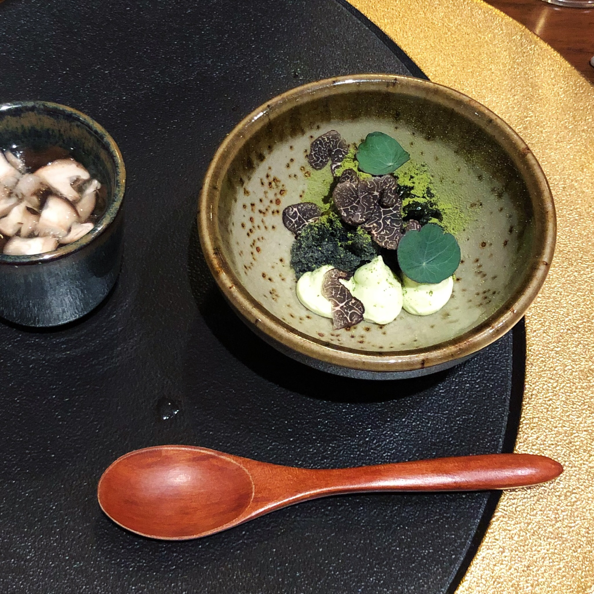 Kohle hats ja in Zeiten von FridaysForFuture gerade nicht leicht. Hier wird sie aber zum Glück nicht verfeuert, sondern ist als Bambus-Kohle-Kuchen teil der Vorspeise “Japanischer kleiner Garten”. In Zeiten, in denen quasi jedes zweite Restaurant irgendwie japanische angehauchte Fusion-Sachen auf der Karte hat, ist ein kompromisslos japanisches Menü wie im Zipang tatsächlich mal sehr erfrischend. Einziger Wermutstropfen: der Innenraum ist ein bisschen zu hell und ein bisschen zu laut, richtig gemütlich wird es dadurch nie so richtig. Da würde man sich auch Innenarchitektonisch etwas mehr “Japanischer kleiner Garten” wünschen.