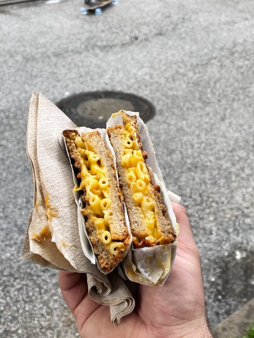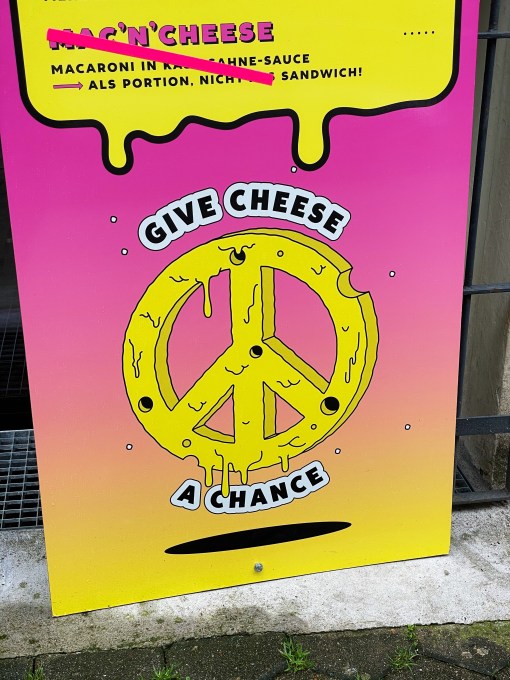 Auch wenn das Ziel dieses Witzes das Billofleisch sein soll muss man hier doch auch mal den hochwertigen Grill in Schutz nehmen. Denn so wichtig gute Zutaten natürlich sind, so kommt es eben doch auch drauf an, wie man Dinge erhitzt. (Wer mir nicht glaubt schaut sich bitte dieses TikTok-Video an, in der die Eine ein Steak im Toaster macht. Aber bitte tut mir einfach einen Gefallen und glaubt mir, das wollt ihr euch nicht antun.) Das Spektrum zwischen Essen erwärmen und Essen verbrennen ist breit und voller Gefahren und irgendwo dazwischen liegt perfektes Grillen. Und wer das mal live erfahren möchte, schaut bei Grilled Cheese Wonderland vorbei. Selten hab ich so ein perfekt gegrilltes Grilled Cheese gegessen, bei der knusprigen, karamellisierten Außenschicht vergisst man fast den Fakt dass da zwischen den Brotscheiben nicht einfach nur Cheese sondern Mac’ and Cheese warm vor sich hinschlotzt. Dazu kann man sich übrigens abgefahrene Dosenbiere mitnehmen, unter anderem mit Ananas, Passionsfrucht und Pfirsich. Aber lasst euch nicht von irgendwelchen Stand Uppern erwischen! Nichts lieben Boomer-Comedians mehr als das Deutsche Reinheitsgebot und wenn die Kleinkunstbühnen des Landes wieder aufmachen nur damit da irgendwelche Hot-Takes über Craft Beer verbreitet werden … dann haben wir aus der ganzen Sache echt gar nichts gelernt.