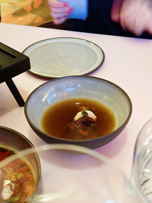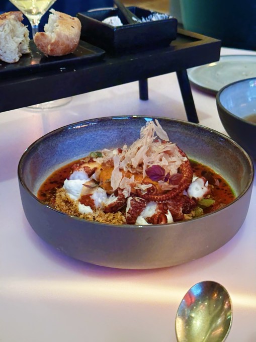 Besagtes Volk verlangt aber ja, wie wir jungen Römer wissen, nicht nur nach Spielen, sondern auch nach Brot und deswegen jetzt Boulekugel aus der Hand und ab ins Erdgeschoss. Und auch hier ist es so, wie es beim Kickern meist auch ist: nicht ganz so einfach. Handwerklich ist das alles auf einem sehr hohen Level, Garpunkte wie bei der Garnele werden perfekt getroffen, die Zutaten sind von beeindruckender Qualität. Nur die Zusammensetzung verstehe ich nicht. Googlet einfach mal das Arcade-Game-Genre “Bullet Hell” und stellt euch vor, das ist eure Zunge. Jedes Gericht ist salzig, sauer, cremig auf Anschlag, wie als gäbe es einen High-Score zu knacken, aber leider hinterlässt deswegen auch jedes Gericht einen ziemlich ähnlichen Eindruck.