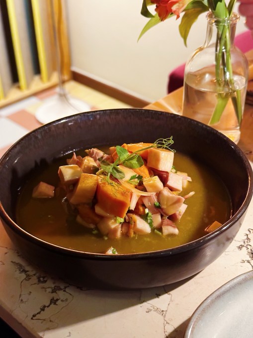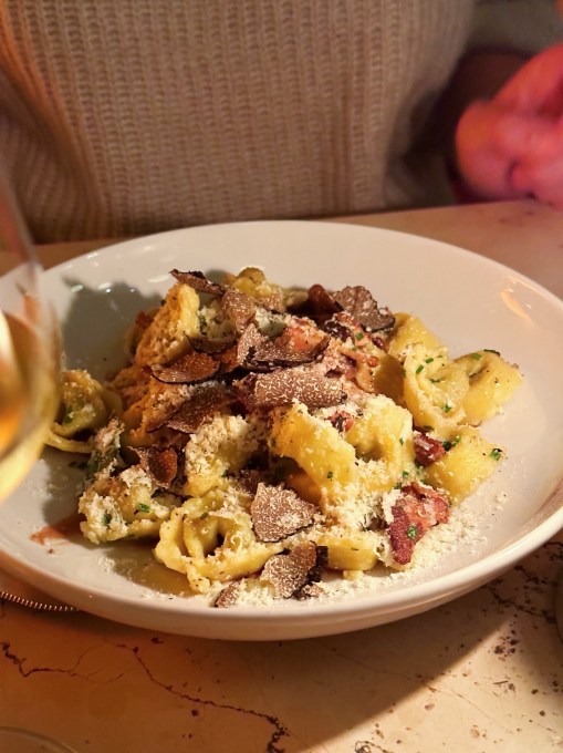 Und das mit der Behaglichkeit zieht sich auch beim Essen durch. Wenn auch die Vorspeisen nicht so meins waren und das Pilz-Ceviche bei meinem Ceviche-Rant gern mitgemeint sein darf, haben es die Hauptspeisen komplett rausgerissen. Das Saltimbocca mit Polenta war Comfort Food, aber mit feiner Klinge statt Holzhammer und auch die Pilz-Tortellini überzeugten mit viel Umami und genau der halben Hand mehr Pasta, die einem das Gefühl gibt, dass da jemand eine große Portion Liebe aus der Küche schicken will.