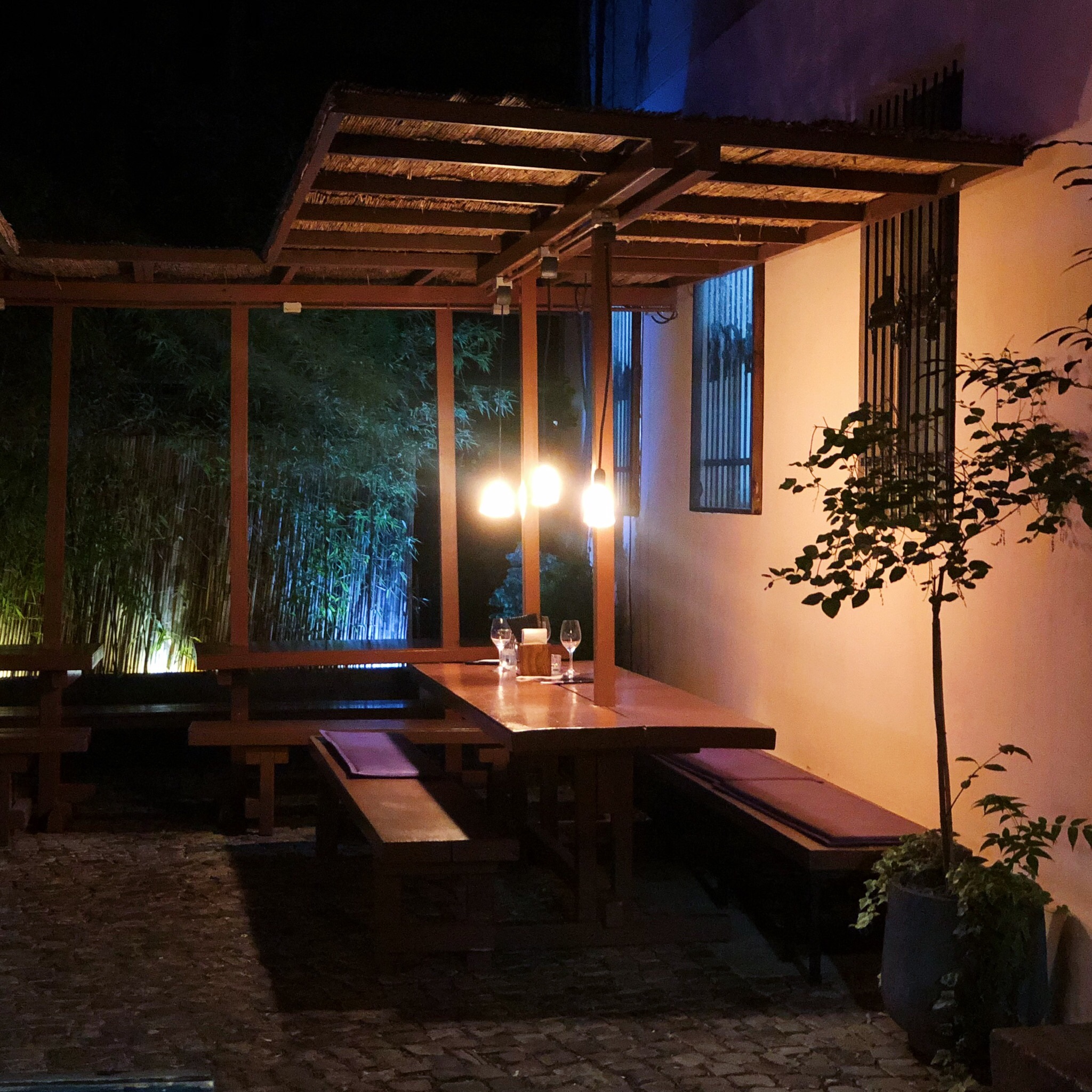 Kino – „Ja da war doch mal was“ denkt man sich als man die großen roten Lettern über dem Hinterhof des Kuchi schweben sieht. Auch so ein Vor-Corona Vergnügen. Naja, Vergnügen… Fast and the Furious Teil dreihundertzweiundsiebzig mit der CGI Repräsentation von dem Hund von dem einen, der sich mal um den Baum gewickelt hat und Vin Diesels linken Bizeps in der Hauptrolle, dazu bitte zwei Hektoliter Cola-Light und Nachos mit diesem gelben Tapetenkleister. Oder halt gute Filme in irgendeinem Programmkino, in dem die Qualität der Vorführtechnik ungefähr auf dem Level von einem ins Wasser gefallenen Iphone 3S ist. Wenns das dann jetzt vielleicht mit Kino war, bleibt uns eben vielleicht nur noch essen gehen. Ist ja am Ende irgendwie auch das gleiche. Auf dem Teller gibt es Hauptdarsteller, Nebendarsteller. Dramaturgie ist wichtig, weiß jeder bei dem die Vorspeise schon mal nach dem Hauptgang kam. Der Regisseur ist meistens nicht zu sehen. Und den Schnitt sollte man eh nicht versauen. Das Kuchi Mitte: wäre in dem Fall ein asiatischer Thriller, für den westlichen Markt passend adaptiert. Die großen Stars Fernosts, Udon, Sushi, Dim Sum, Yakitori, Wok kommen nochmal zusammen um die Welt zu retten. Oder zumindest Berlin Mitte. Überzeugende Performance, hier und da fließt sogar mal ne Träne (Wasabi sei dank). Und seid beruhigt, wenn ihr aus dem Dunkel des Kuchi heraustretet könnt ihr immer noch die total bescheuert Kinofrage stellen: “Und, wie fandest dus so?”
