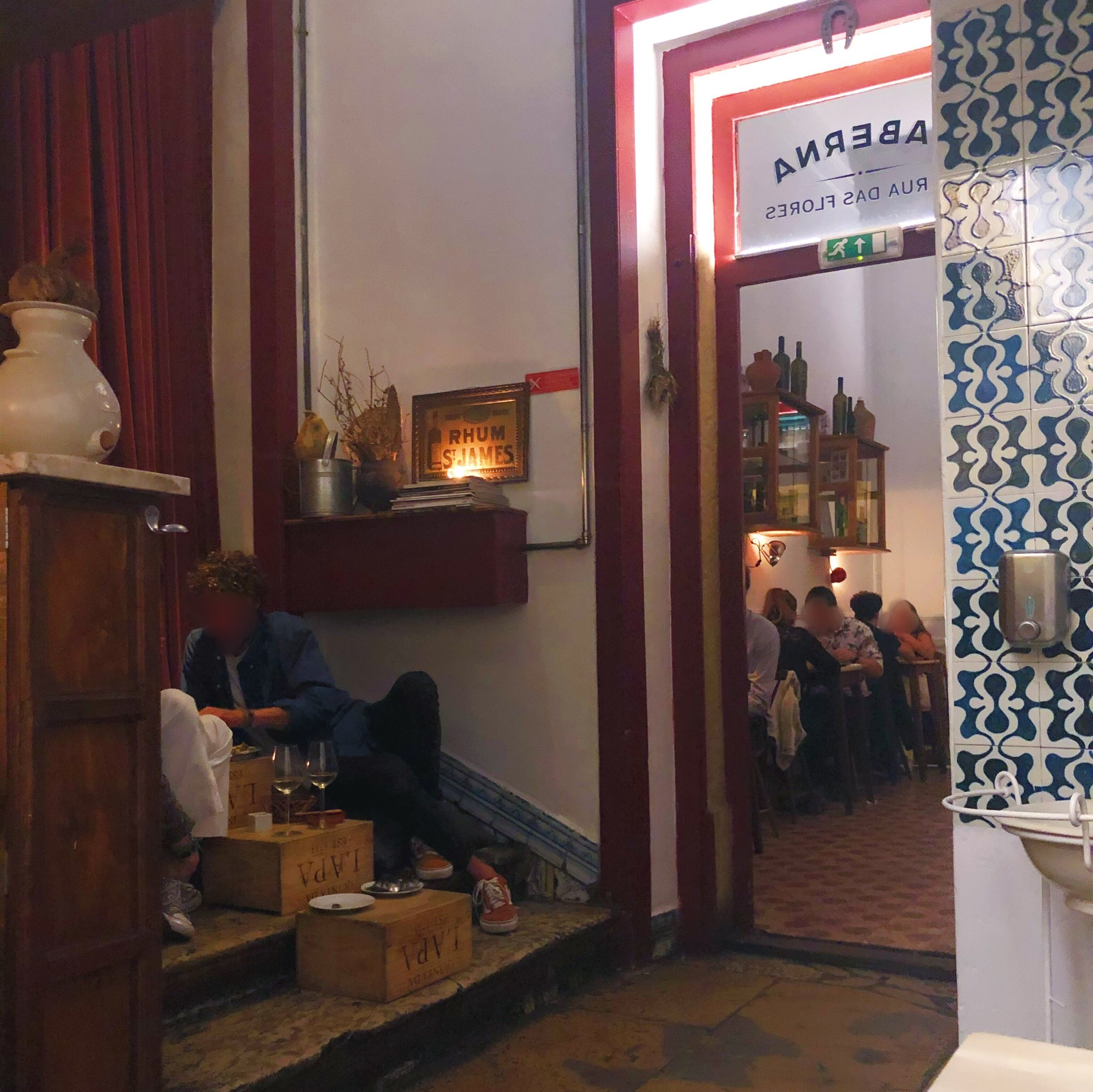 Tomato with salt. This is a dish here at Taberna da Rue das Flores. It’s simple, but it really is a big deal. Because the simple stuff has to be good. No place to hide. And the tomato variety from the south of Portugal was crazy good. This is one end of the spectrum here at this small restaurant. The other one is surprising never-tasted-before flavours. A pork neck grilled in sea lettuce, a burned scallop, a portugese version of Okonomiyaki. This is not an “easy” restaurant you can blindly recommend to everyone visiting Lisbon. You might need to wait an hour for a table. You need to have a sense of appreciation for the super-simple and the complex. You need to have taste to taste the magic of Taberna da Rua das Flores.